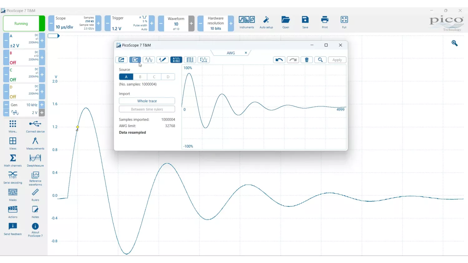 卓越的顯示和處理能力:利用現(xiàn)有計算機的高分辨率顯示器的強大功能,可查看比典型臺式示波器多 10 倍的細節(jié)。PC 的高級處理功能使 PicoScope 7 能夠提供超越傳統(tǒng)示波器功能的復(fù)雜數(shù)學(xué)、測量和分析工具。
